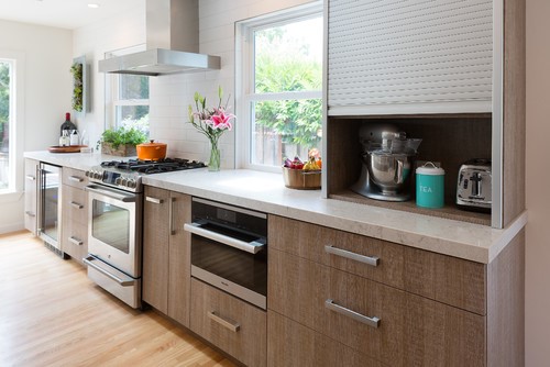 Appliance garages are counter-level compartments designed to house small appliances like blenders, toasters and stand mixers. They make it convenient to have these items readily accessible, without the look of a cluttered counter.